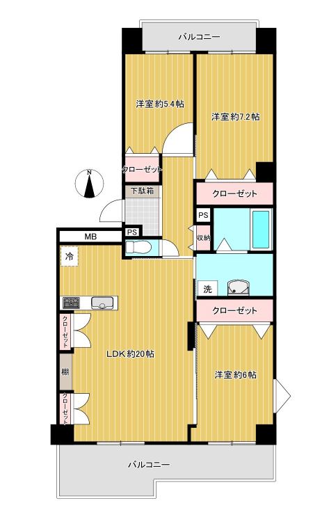 LDK20畳 洋室7.2畳 洋室6畳 洋室5.4畳 |