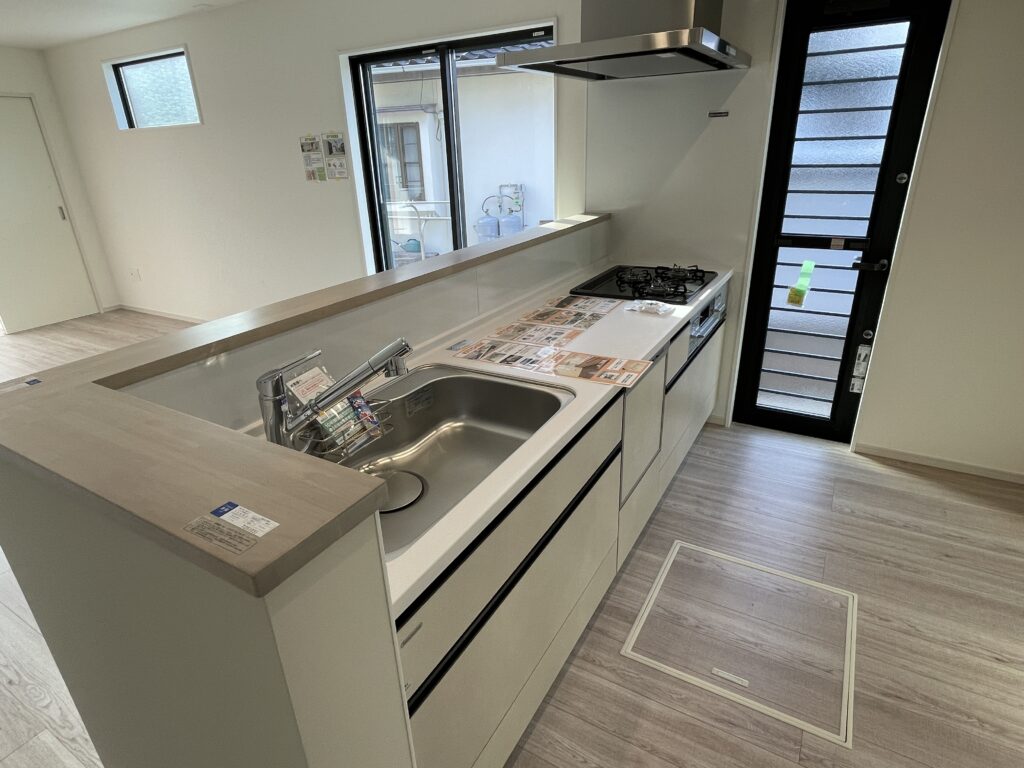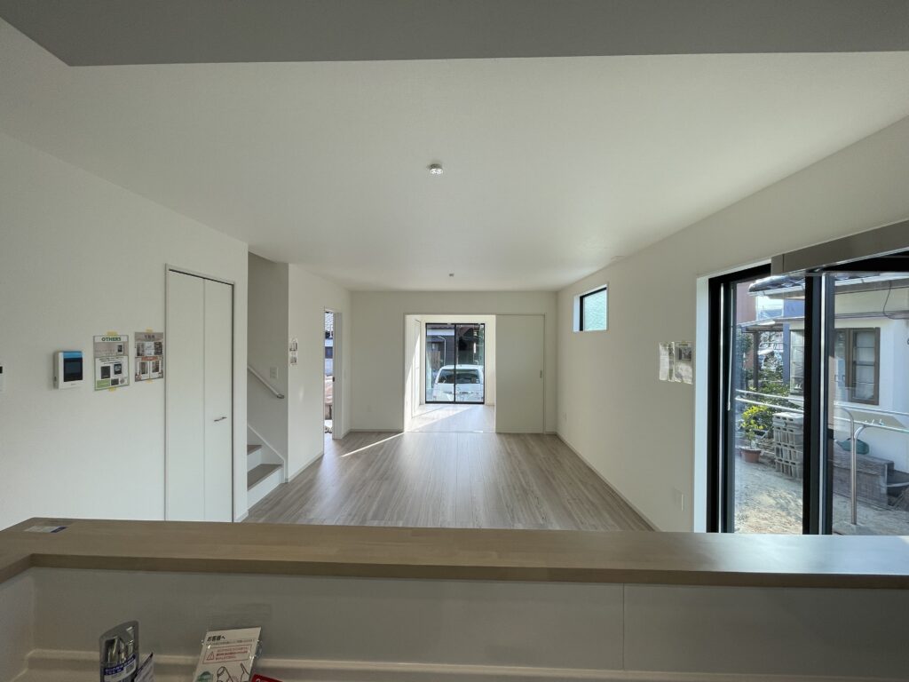 | 設備・条件 | 複層ガラス、ダウンライト、フットライト、リビング階段、システムキッチン、カウンターキッチン、食器洗浄乾燥機、勝手口、コンロ口数(3口以上)、省エネ給湯器、電気、浴室乾燥機、追焚機能、浴室暖房、トイレ2箇所、温水洗浄便座、シャンプードレッサー、TVモニタ付きインターホン、ウォークインクローゼット、床下収納、シューズボックス、ルーフバルコニー、都市ガス、上水道、下水道 |
