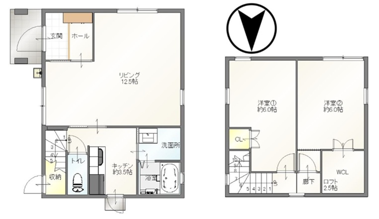 LD12.5畳 1階 K3.5畳 1階 洋室6畳 2階 洋室6畳 2階 |