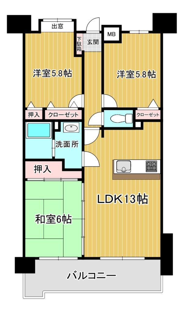 LDK13畳 和室6畳 洋室5.8畳 洋室5.8畳 |